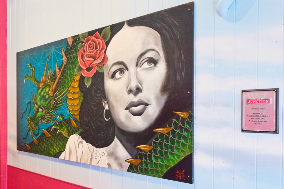 Chasing the Dragon, Blue Geisha Tattoo, Hedy Lamarr, Mural Alley SW, The Junction, West Seattle, Seattle, Washington, USA, fotoeins.com