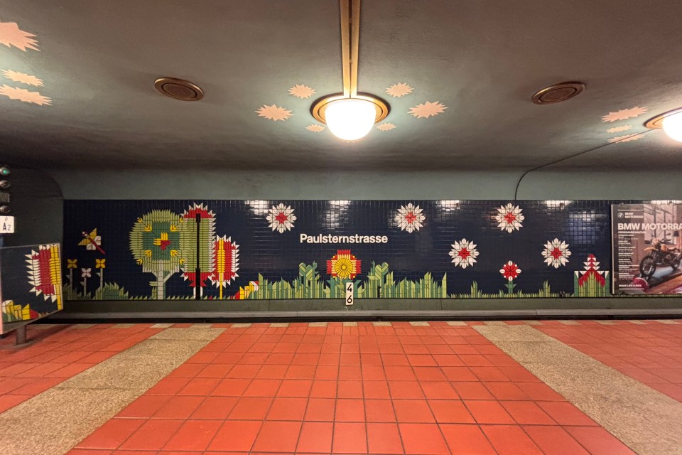 U7 station Paulsternstrasse, track level. The station opened for public service on 1 October 1984.