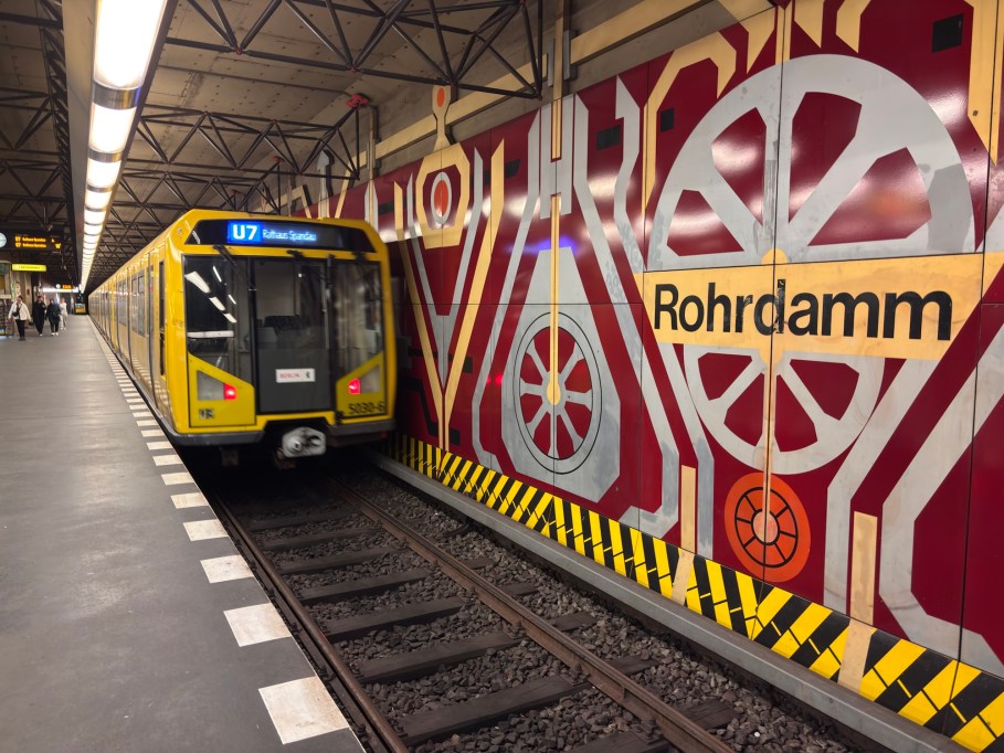 U7 train departing Rohrdamm for Rathaus Spandau.