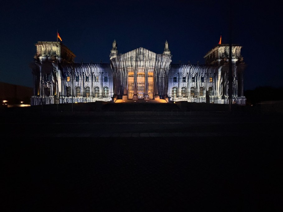 It’s 2025, and over 14 nights in June, a light-display every evening on the Reichstag building commemorates the 1995 “wrap”. The free show runs every 20-minutes between 930pm and 1am, from 9 June to 20 June inclusive.