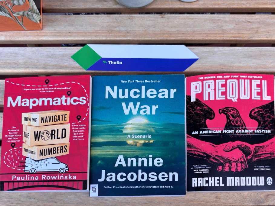 Passing through Wien-Mitte/Landstrasse in early-evening, I stopped off at Thalia, a chain of bookstores based in Germany. They also carry books in multiple languages, and their English-language section is very decent. These three titles grabbed my eyeball, thereby loosening the wallet. “Mapmatics” combines my love of maps and mathematics. “Nuclear War: A Scenario” is a what-if chain of events. “Prequel” is about how early 20th-century Nazism had crossed west over the Atlantic in their undisguised attempt to soften American public opinion and delay or stop any possible American military intervention.