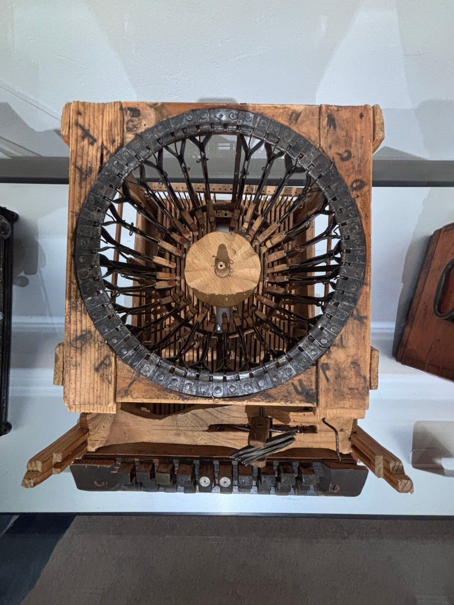 Top view: one of the earliest typewriter prototypes, by Peter Mitterhofer in Partschins (Italy) in 1864.
