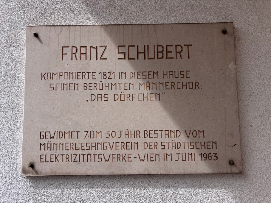 Memorial plaque: Franz Schubert composed “Das Dörfchen” at this location in 1821.