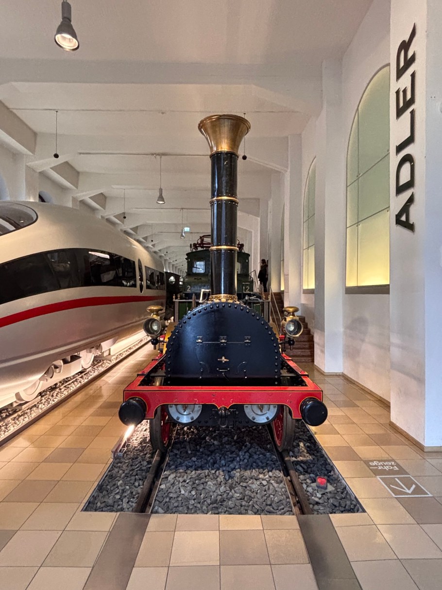 Established between Nuremberg and the nearby city of Fürth, the Ludwigseisenbahn began operation as Germany’s 1st railroad on 7 December 1835. A replica of the engine car, the Adler from the very first journey is in the museum proper (above).