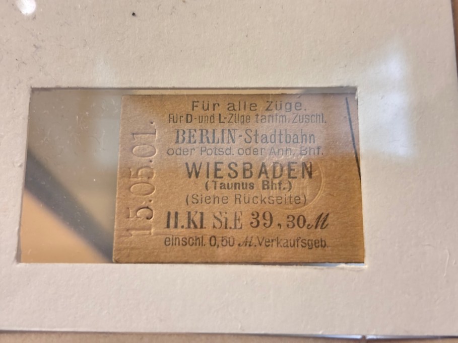 Train ticket in 2nd class, from Berlin to Wiesbaden, on 15 May 1901.