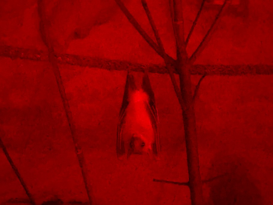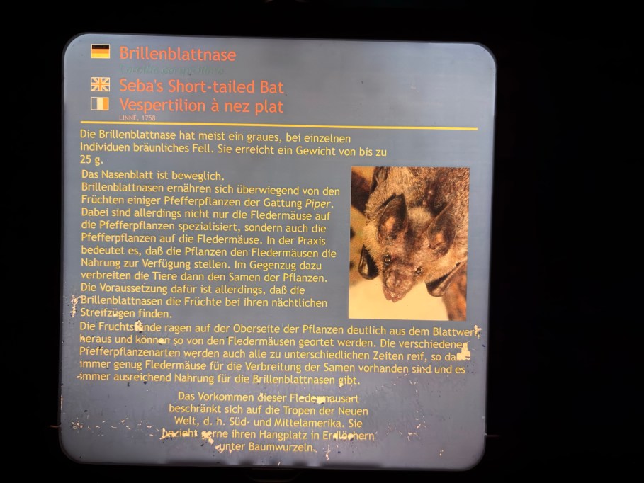 The other type of bat on view: Seba’s short-tailed bat (Brillenblattnase).