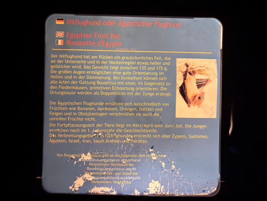 One of two bats on view: the Egyptian fruit bat (Nilflughund).