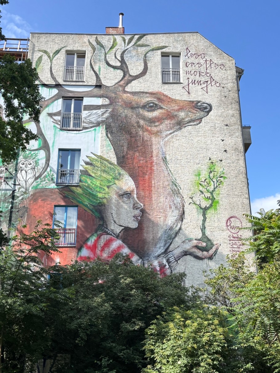 “Less castles, more jungle.” Hera (of Herakut) + Juli Jah + friends for the Green Forest Fund, 2023.