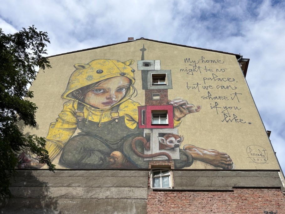 “My home might be no palace, but we can share it if you like.” Herakut 2018.