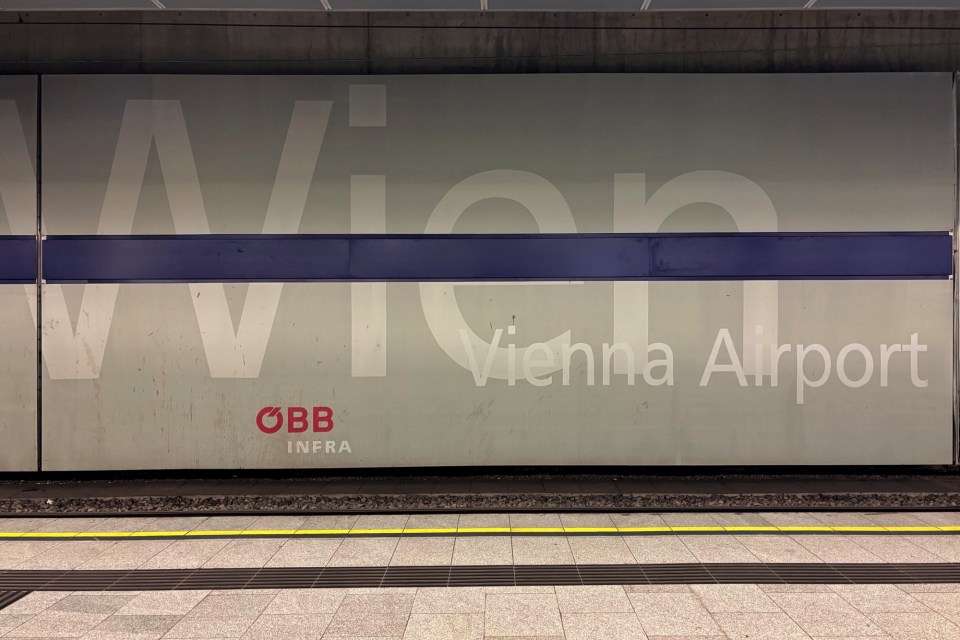From one airport’s train station at BER, to the next airport’s train station at VIE.